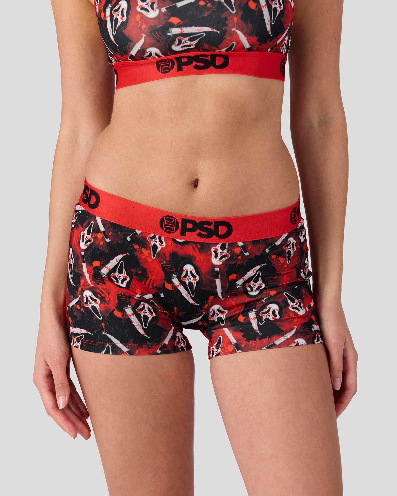 This new look from Ghost Face x PSD is killer. Slice into scary season with the Slasher Boy Short, made from a silky poly blend with a comfortable full-coverage, keep-you-in fit. The PSD boy shorts are perfect for everyday wear and working out.