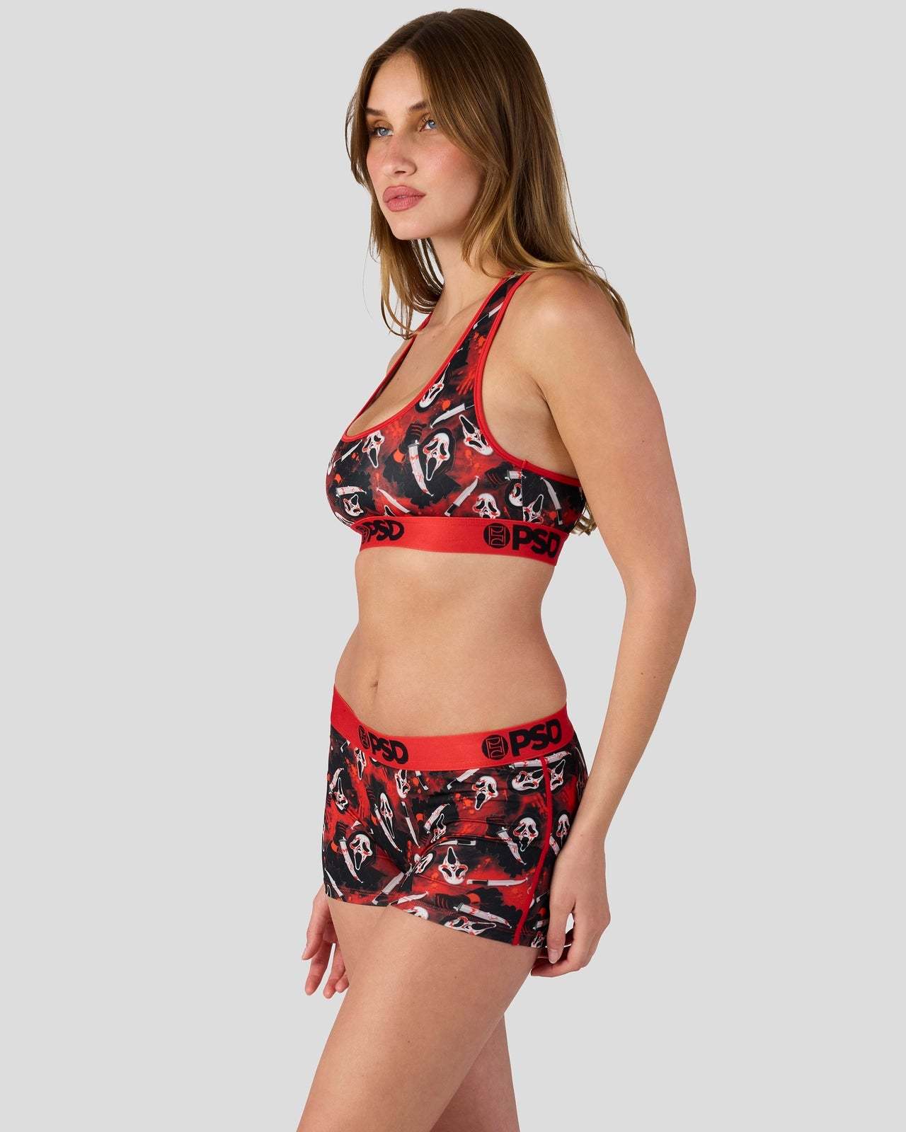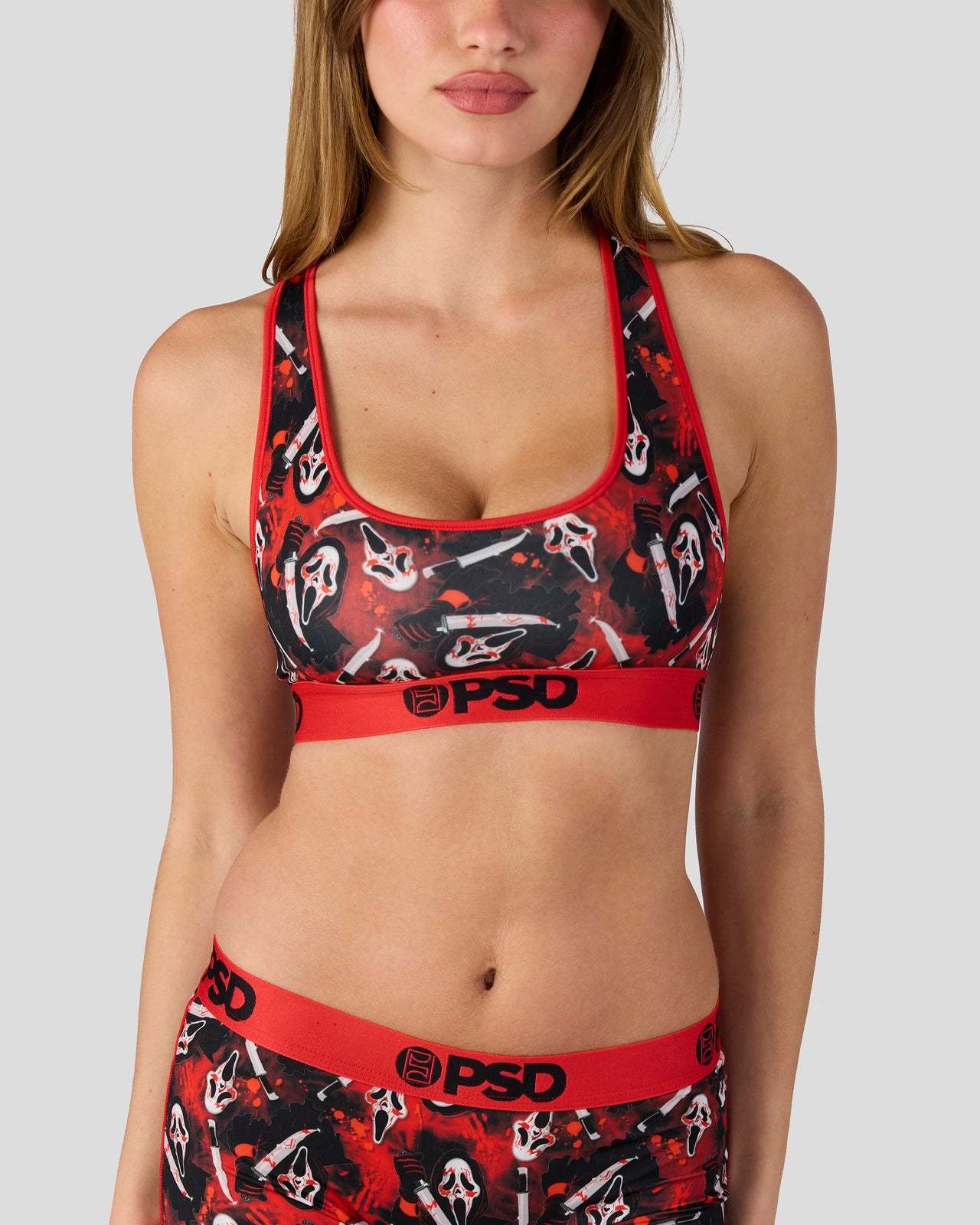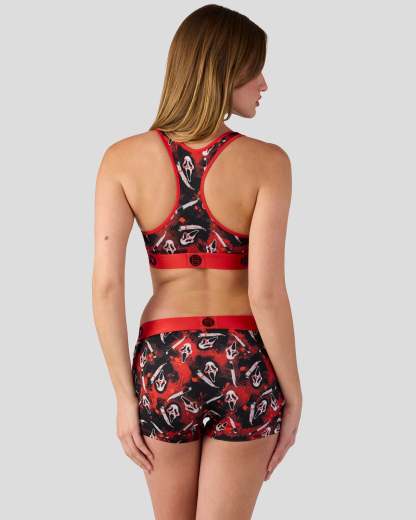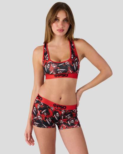 This new look from Ghost Face x PSD is killer. Slice into scary season with the Slasher Sports Bra, made from a silky poly blend that’s breathable yet slightly compressive, bringing you the comfort and support you need for everything you get into.