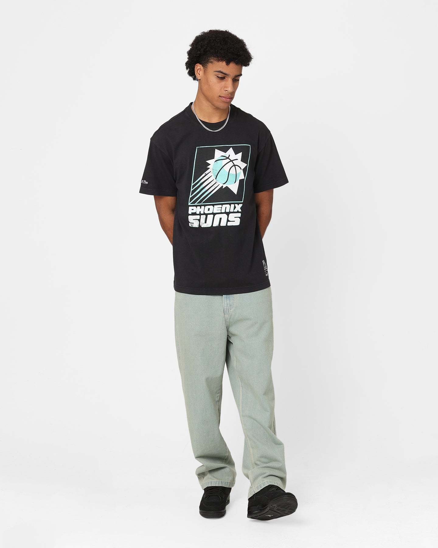 Mitchell & Ness Phoenix Suns Ice Blue Logo T-Shirt Faded Black