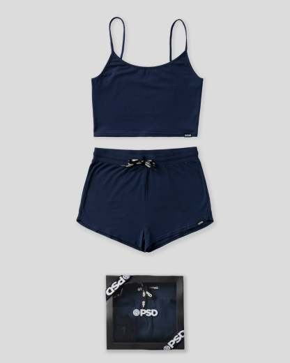Your downtime just got a whole lot more comfortable. Made of our super soft premium Modal, the Nite Blue Cami Sleep Set includes a matching spaghetti strap cropped tank and dolphin hem shorts.
